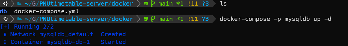 docker-compose -p [설정한 DB이름] up -d