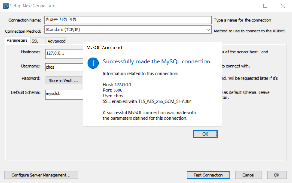 Connection Test를 한다.